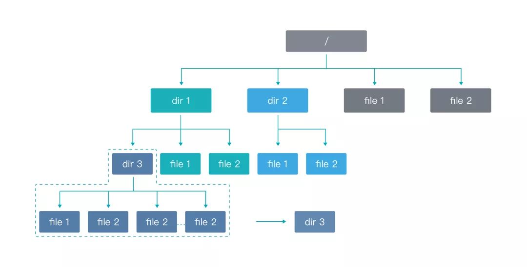 为了进一步提升小文件筛选与治理流程,焱融科技采用了增加虚拟子目录的方式,虽然这种方式增加了一层目录查询的操作,但是其具备灵活性强的特点,可以将热点分摊到集群中所有元数据节点。同时,这种解决方法还可以解决另一个问题——单目录的文件数量问题,使单目录实现支撑 20 亿左右的文件数量,并且可以根据虚拟子目录的数量灵活调整。整体结构如下图所示:
