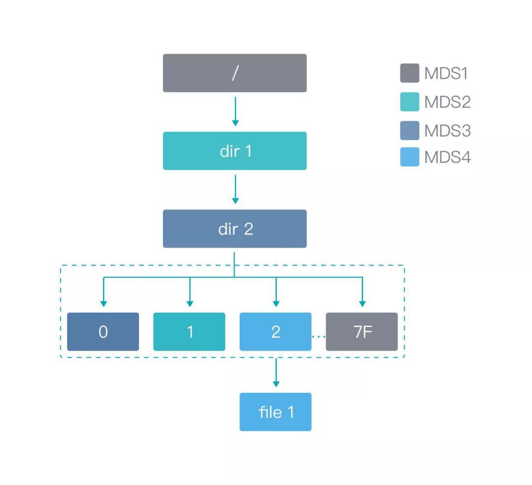 - 每一级目录会根据 Entry name 进行 hash,再次选择 MDS,以此保证横向扩展的能力;